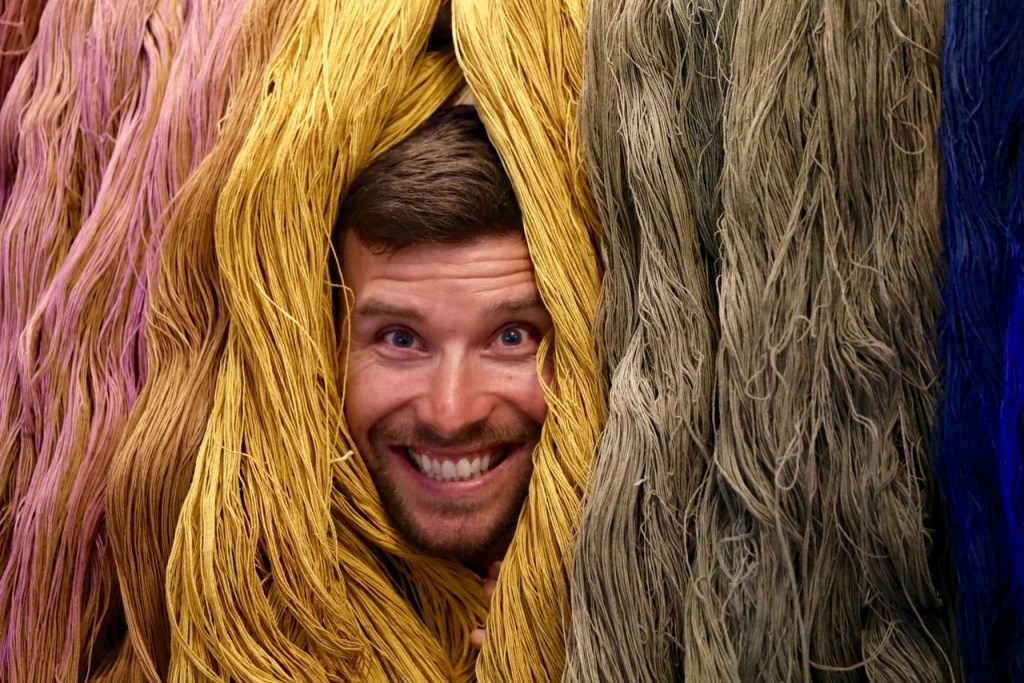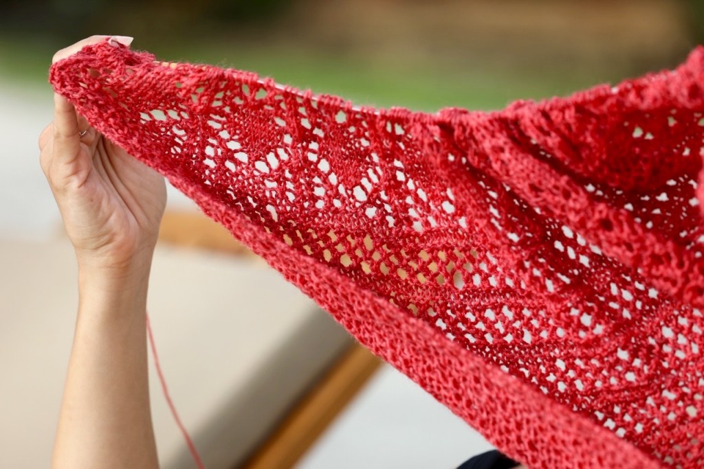 Feelin-knit. Jyn Knitting a shawl on the beach