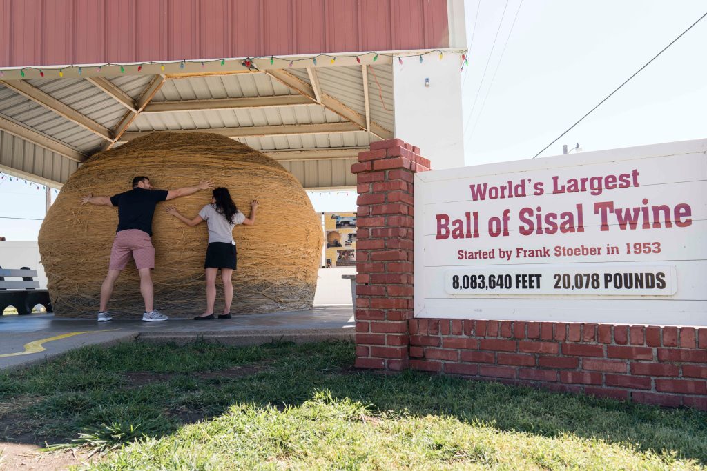 After a recuperative stay in Colorado, our next destination was Oklahoma, but we had a couple of stops to make along the way. We left Denver and headed to Cawker City, Kansas, to see the Largest Ball of Twine. Since we knit, we had to stop there to see the distant cousin of yarn. Six hours later, we were there and it was massive. Over 20,000 pounds of twine! You might recognize it from the movie Michael. A quick hug and sniff, and off we went.