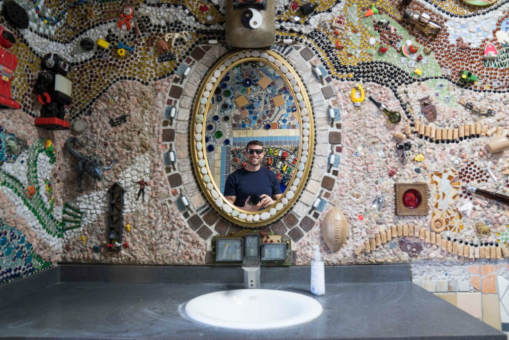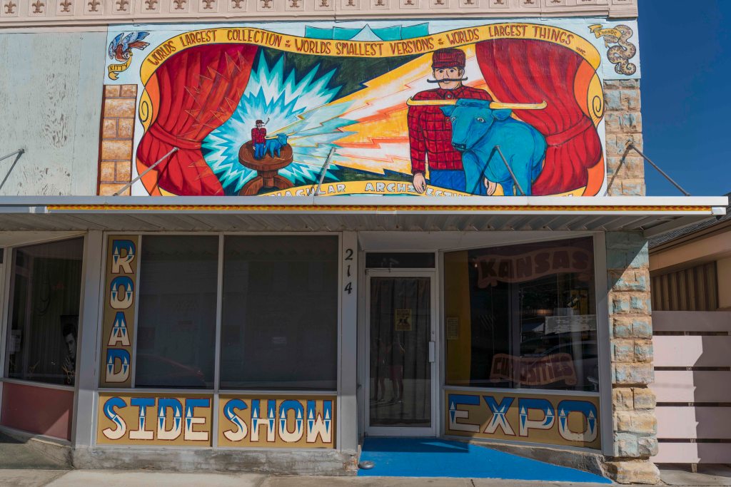 Our next destination was Lucas, Kansas, to see The World’s Largest Collection of the Smallest Versions of the World’s Largest Things. For example, a replica of the largest ball of twine that is the size of a marble and a buffalo that’s the size of a thumb nail. Unfortunately, we could not get in to see the entire collection, just a few items in the window. The shop was closed and a sign informed us that it would only be open “by chance or appointment.” We tried to call, but there’s no cell service in that area. Alas… We did find a silver lining though. A talkative lady from the art gallery across the street mentioned that we must see the $65,000 bathroom that was created by an artist. Unsure what to expect, we walked a few buildings over and sure enough, there it was. A building with a front yard designed to replicate a cement toilet bowl and a path into a giant glass mosaic toilet seat. Adjacent to the building is a short walkway to a huge cement roll of toilet paper. Inside, the mosaic continued. Surprisingly, the bathroom was very clean. It seemed like a good to time go… and then leave for our final location of the day: Lawton, Oklahoma (another 6.5 hours away).