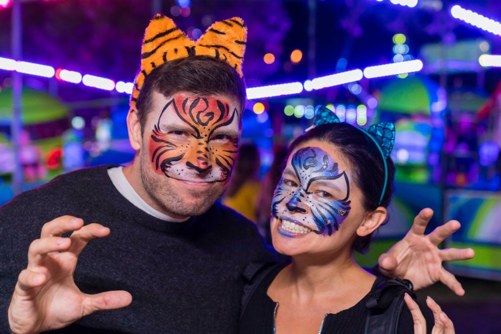 In the evening, it was time for the Fall Festival. Imagine a fair the size of a small city. On the way into the festival, we walked by at least 50 food vendors selling fried dough, brain sandwiches (yes. brain), corn dogs, deep fried Twinkies, and various other fair fare. Dozens of rides lit up the sky, 75% of which appeared to be the type that are designed to remove the contents of your stomach. As mature adults, we opted to have our faces painted like cats and ride the ferris wheel. This is one of the rare occasions that Jyn actively wanted us to match, so I turned into a cat. Since I do not drink, I am unable to blame this decision on anything else. We passed the Marines booth where they had their classic pull up contest/recruiting effort. If you can do 20 or more pull ups, you get a shirt. I decided to impress Jyn with my cro magnon manliness and pulled my way to a new shirt. Still got it.