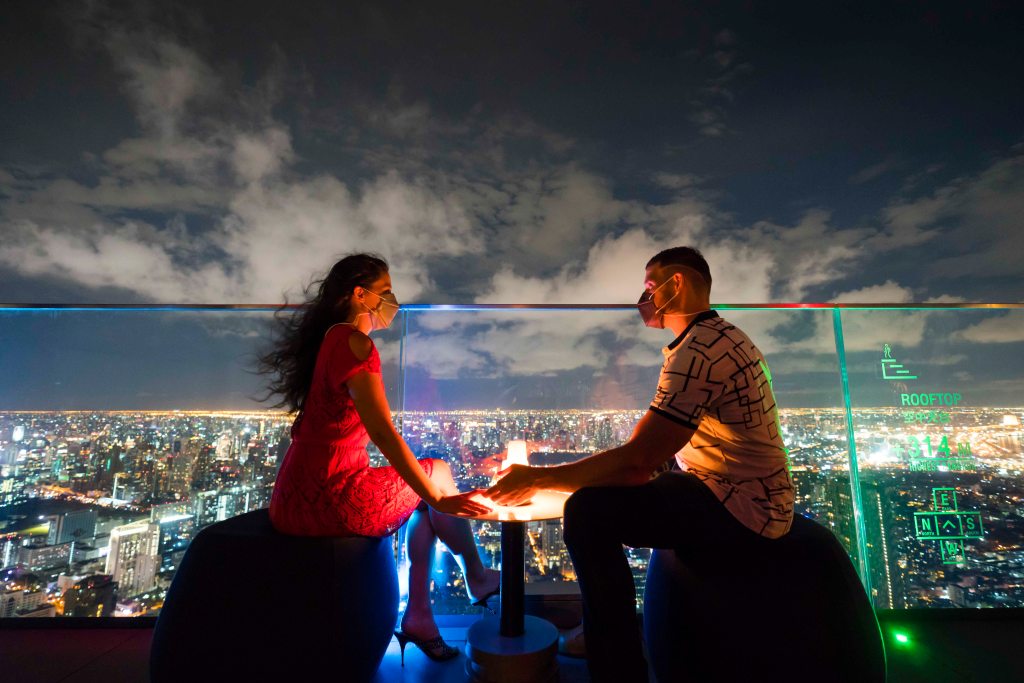 After having dinner at the Mahanakhon once, we knew that we would go back. I still salivate when I think about the food, and the restaurant provides one of the best views of the city. We went for round two and it better than anticipated, again. The burger was still amazing (one of the best burgers that i’ve ever had). Then, we went to the roof to look out over the city. Walking onto the glass floor outcrop nearly gave Jyn a heart attack. It’s a great view from 314m above ground. I discovered that, much like a cat, Jyn normally keeps her claws safely retracted. After some soft tissue damage on my arm, she did manage to walk out to the center long enough for a picture 🙂