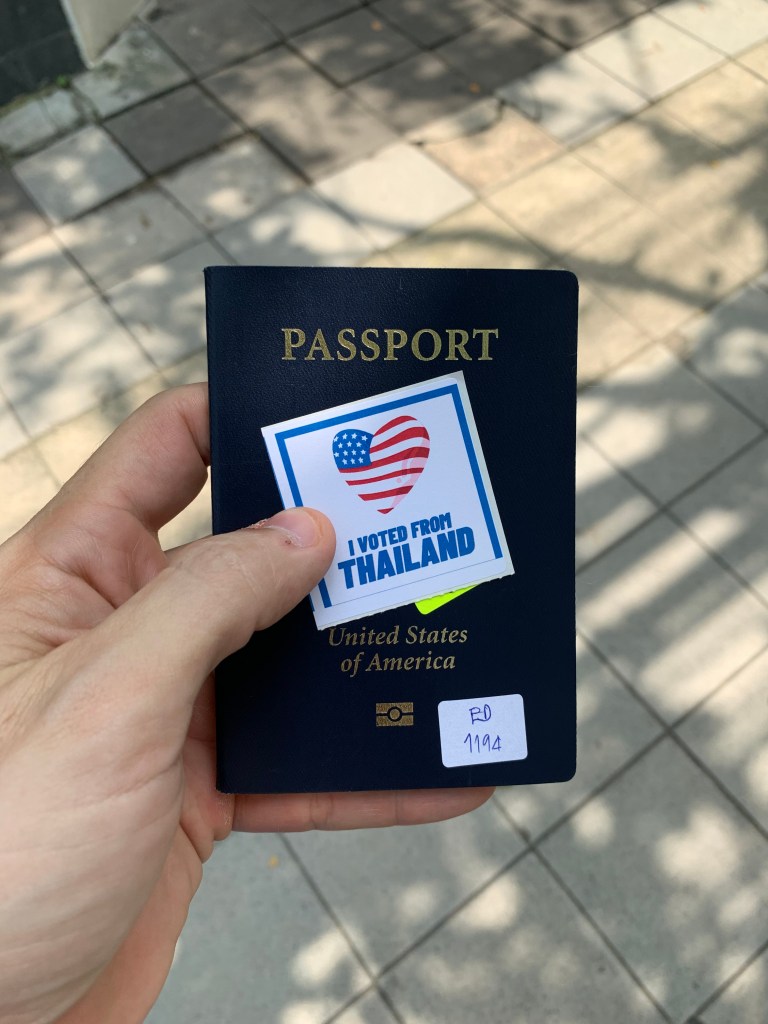 WE VOTED! “Americans can vote. Wherever they are.” -US Embassy Poster. It wasn’t a particularly easy or clear process, but we did it. It was comical that in order to complete an online process, we were required to send physical mail to the US… twice. Since the Thai postal service hasn’t been permitted to send documents/postcards/letters to the US for several months now, we had to drop off all election-related correspondence at the US embassy. We were willing to go to great lengths to ensure our voices were heard. This election is super important.