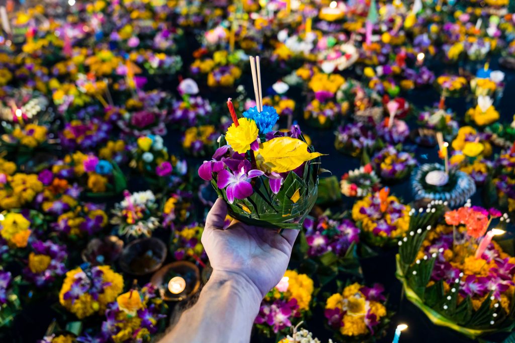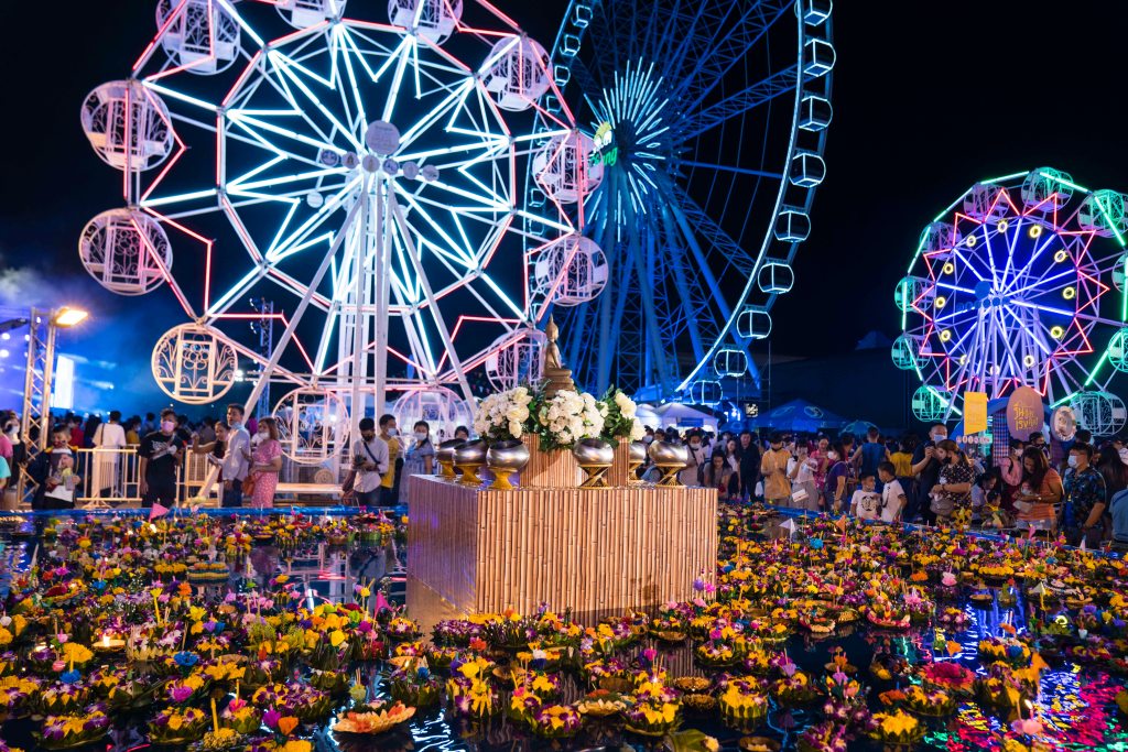 This year (2563 in Thailand), Halloween and the Thai Holiday of Loy Krathong fell on the same day, but that doesn’t mean much in Thailand. Halloween is not widely celebrated here. Loy Krathong is a celebration to give thanks and pay respect to the water goddess. It’s also a time to float away any anger or negativity from the past year and start anew. To give thanks, people make beautifully decorated biodegradable floats, called krathongs, and place them in a body of water (typically a river). The krathongs are usually lit and carry a small offering (small amounts of money). If your krathong goes beyond your field of view before the light goes out, you should have a year of good luck. Our krathong made it out of our sight before burning out. Yay! Yi Peng is another Thai holiday that is often confused with the Loy Krathong holiday. Yi Peng is celebrated before Loy Krathong and the biggest celebration is in Chiang Mai with airborne lanterns (I hope to see it eventually). We had originally planned to attend a Loy Krathong celebration at Asiatique–a riverside outdoor shopping area–then move on to a Salsa Halloween event. However, we ended up stay at the Loy Krathong event for the entire night because we were having such a good time. We bought a bootleg krathong from a “shop” hidden in the shadow of two buildings because all of the ones that were being sold inside the event area were sold out or had a huge line. We let our krathong loose in a giant kiddy pool. Then, we went to the nearby concert and ate pad thai washed down with blended coconut shakes. We tried to beat the crowd home, so we got on a boat that we thought was headed to a BTS station upriver, but it just circled back to the same dock where we boarded. Fail. We learn something new every day.